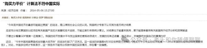 2014年5月6日是,人民日报文章《统计局专家★:购买力平价法高估中国GDP》。