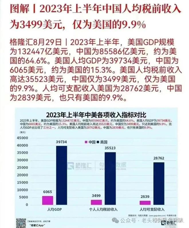根据国家统计局2023年国民经济和社会发展统计公报,2023年中国人均可支配收入为39218元(约5600美元),2023年全国居民人均可支配收入中位数33036元(约4720美元)★。