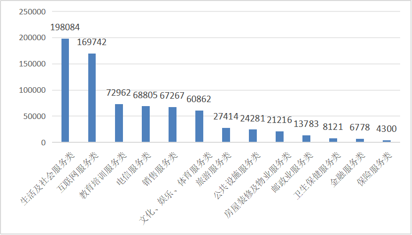 根据2024年服务大类投诉数据(如图3★、表3所示)★,生活及社会服务类★、互联网服务类、教育培训服务类、电信服务类、销售服务类居于前五位。与2023年相比,电信服务类投诉量比重上升较大,生活及社会服务类投诉量比重下降明显。