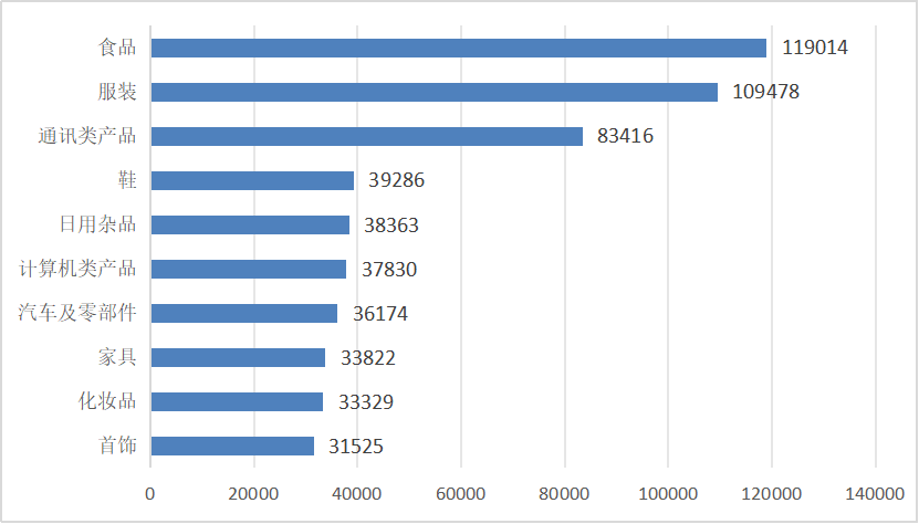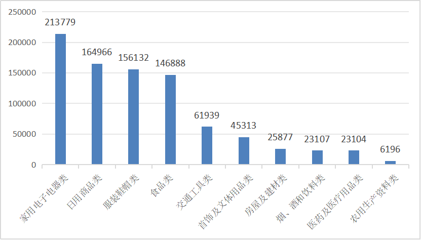 根据2024年商品大类投诉数据(如图2★、表2所示)★,家用电子电器类★、日用商品类、服装鞋帽类★、食品类、交通工具类投诉量居前五位★。与2023年相比,服装鞋帽类、食品类★、家用电子电器类投诉量比重有所上升★,日用商品类、交通工具类、房屋及建材类投诉量比重下降。